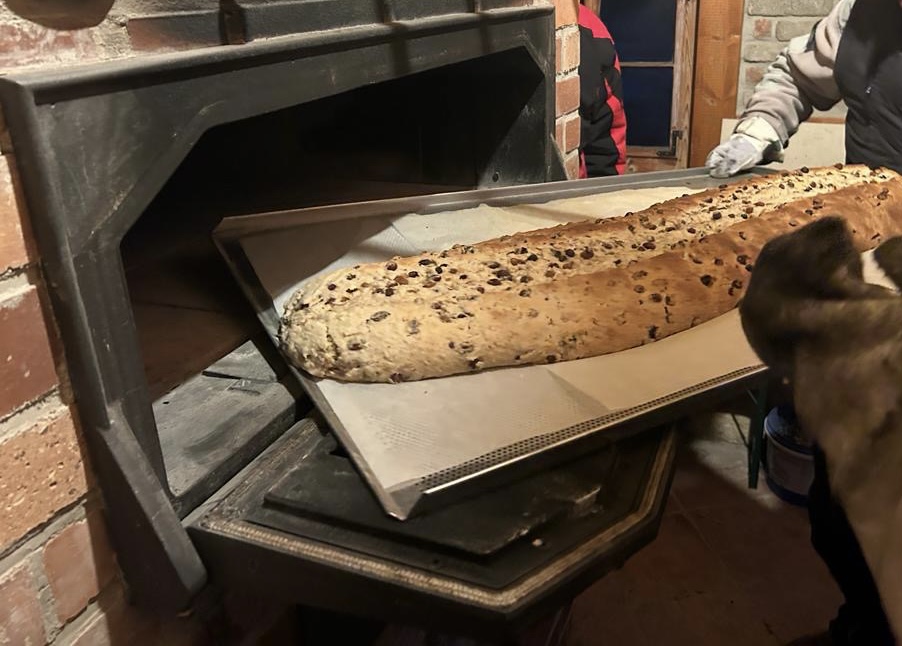 "... gibt`s so manche Leckerei..." und deshalb hat unsere 1. Backfrau Katrin schon einmal den Holzbackofen angefeuert. Der Buchaer Weihnachtsstollen mit einer Gesamtlänge von zwei Metern soll natürlich auch in diesem Jahr zum Weihnachtsmarkt fertig sein. Nach einer Variation von "Omas Rezept" entstanden die vier Einzelteile ohne künstliche Aromen mit reichlich guten Zutaten. Gebuttert und…