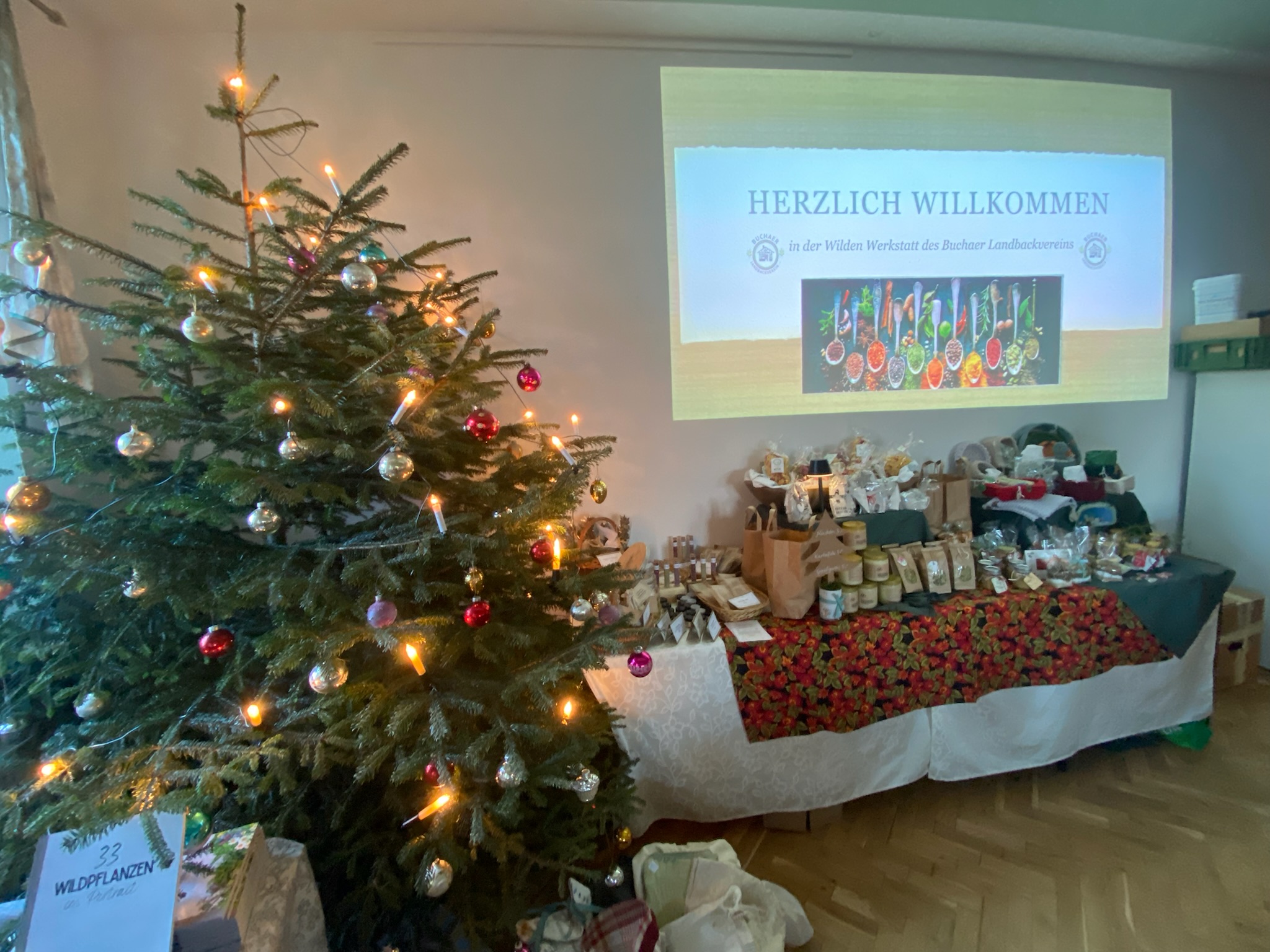Auch der reichhaltig bestückte Shop lädt zum vorweihnachtlichen Einkauf ein. Kreative aus Bucha und Umgebung haben von Weihnachtskarten über Honig, Töpferware und Genähtem auch Kräuterprodukte, Nudeln, Brot, Senf und Seife beigesteuert.