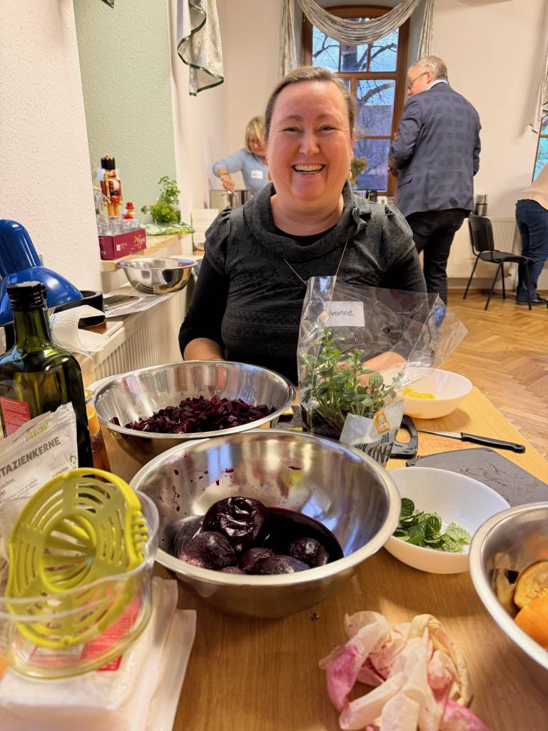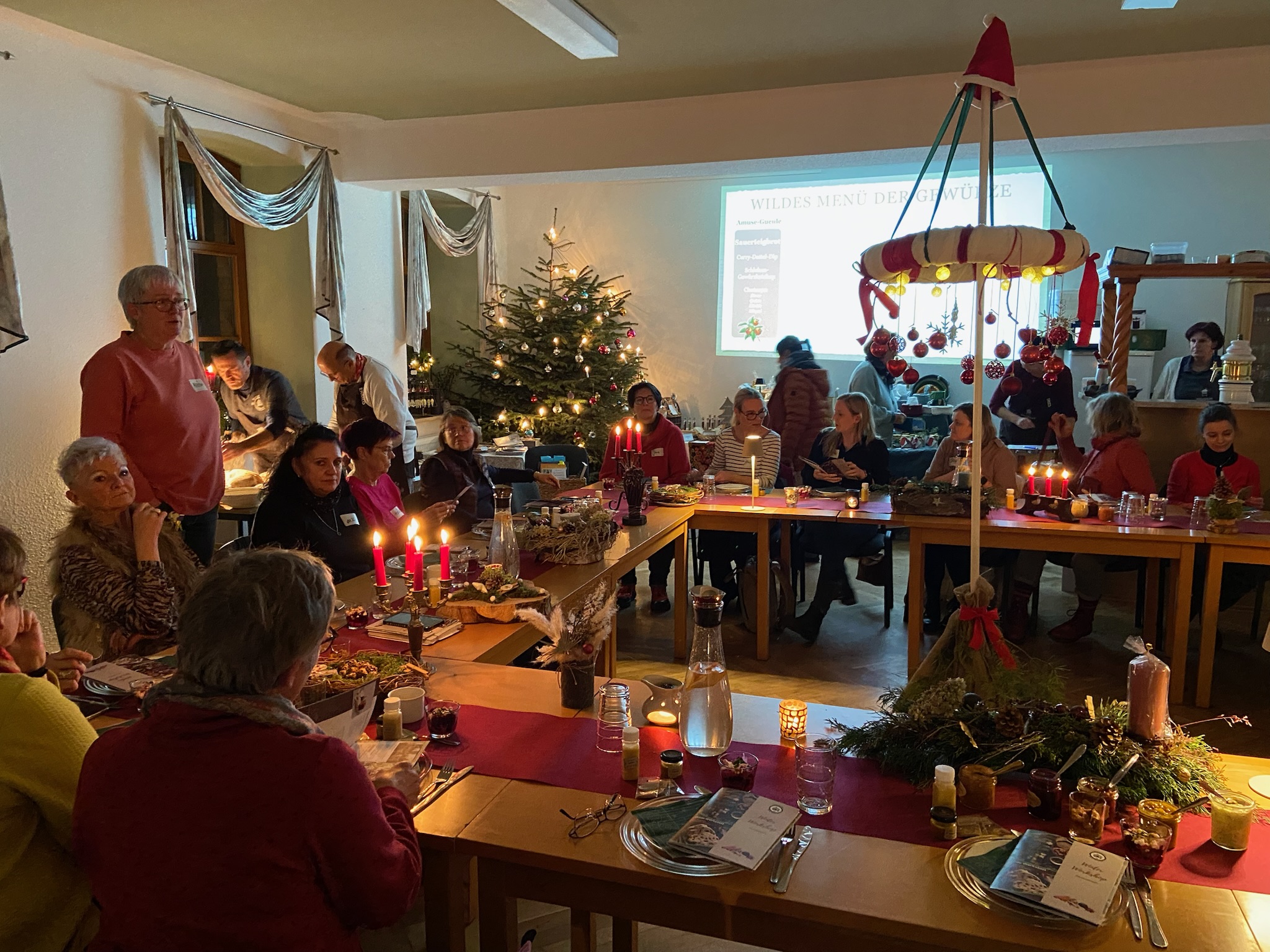 Nach drei Stunden ist es dann soweit und das Glöckchen zum Abschlussmenü ertönt. In gemütlicher Runde verspeist man das Entstandene, tauscht Erfahrungen und neues Wissen aus oder genießt einfach die schöne vorweihnachtliche Atmosphäre. Und das ist auch der Moment, in dem das Team der Wilden Werkstatt innehält und weiß, dass die Mühe lohnt: strahlende Gesichter, liebe Worte, gemeinsame Zeit und anregende Erlebnisse, nette Begegnungen – das ist die Vorweihnacht und auch in krisengeschüttelten Zeiten das Einzige, was man diesen entgegensetzen kann: Gemeinsamkeit, Zusammenhalt, Freude bereiten. — Es weihnachtet sehr.